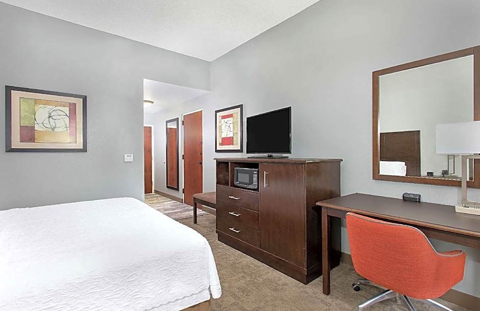 This accessible room features a roll-in shower, visual alarm, microwave, and refrigerator.